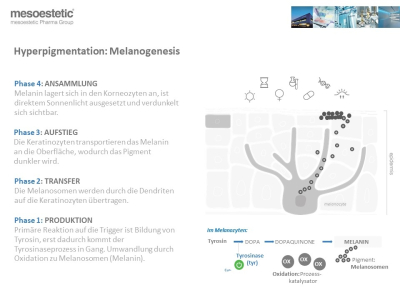Dermamelan verhindert den Transport der Melanosomen zu den Keratinozyten, dadurch wird verhindert, dass die Pigmentierung in die oberflächlichen Hautschichten gelangt.