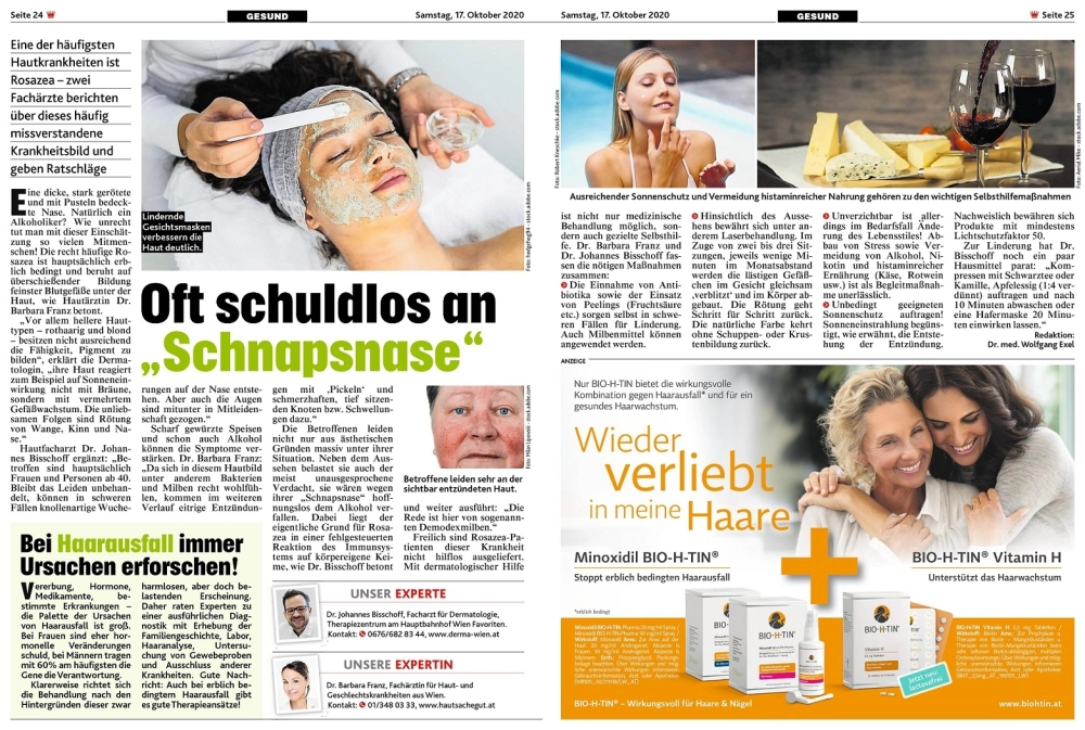 An article of Dr. Bisschoff was published on fitundgesund.at on the subject of rosacea.