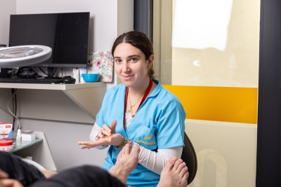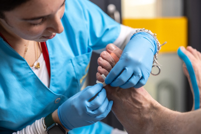 Unser Zentrum zeichnet hier besonders die interdisziplinäre Zusammenarbeit zwischen dem Team der HautärztInnen und FußpflegerInnen aus. Die Behandlung von Fußkrankheiten erfolgt in enger Abstimmung. So kann eine medikamentöse Behandlung durch den Arzt eingeleitet, Laser gegen Nagelpilz eingesetzt und eine umfassende Fußpflege regelmäßig durchgeführt werden.