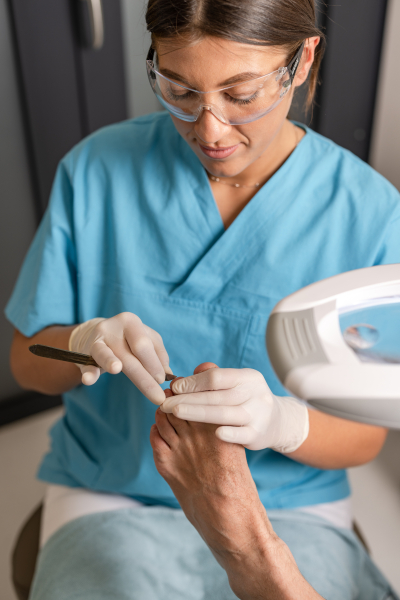 Bei Nagelpilz wird das kranke Nagelmaterial abgetragen und per Laser kann der Nagelpilz schonend und nebenwirkungsfrei behandelt werden. Der Laserstrahl durchdringt die Nagelplatte und therapiert die Nagelplatte als auch die Nagelwachstumszone effektiv. Mit der innovativen Behandlung mittels Laser, die in unserer Praxis zur Verfügung steht, entfällt eine Heilungsphase nach der Behandlung und es können Socken und Schuhe direkt nach der Behandlung getragen werden.